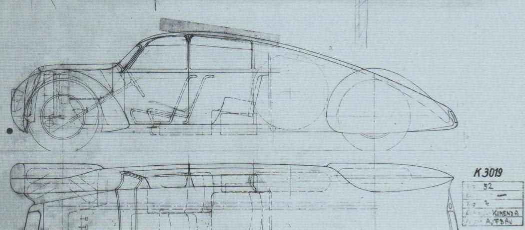 Porsche był zadowolony ze szkiców, ale Komenda chciał aby nowy model był szybszy od Tatry i tak samo praktyczny. Narysował szkice, na których w miejscu kół zapasowych zainstalowano dodatkowy rząd foteli. W tej postaci nowy model miał być dłuższy i wyposażony w dwie pary „kurołapów”, przez które można było zająć miejsce w środku. Tak, kolejny pomysł zakładał, że tym pojazdem będzie można jechać jak w Multipli – nawet w 6 osób. To jednak nie koniec. Probowano dostosować pomysł do tego, co wtedy oferowały marki nowego koncernu.